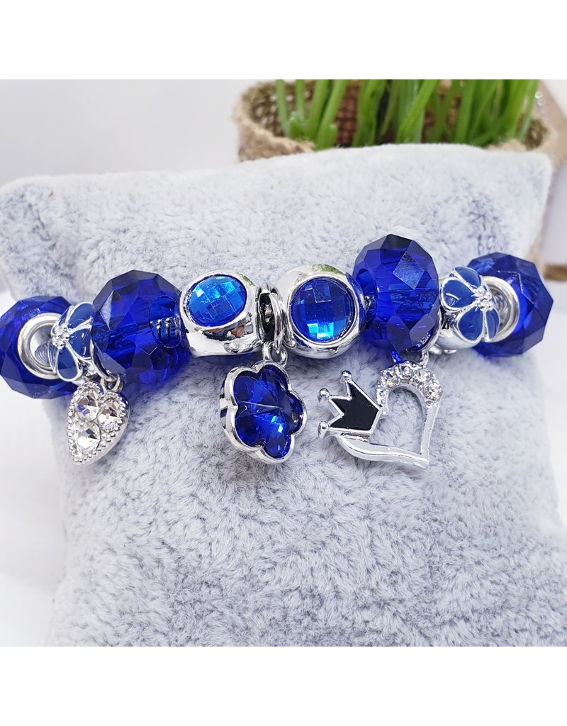BAF0058 - Royal Blue, Heart Crown Flower Charm Bracelet