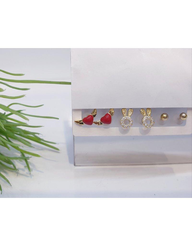 EMA0028 - Gold Bunny, Ball Stud, Heart Wings, Multi-Pack Earring